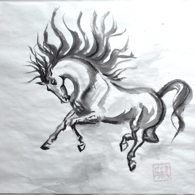 Unique Original Handpainted China Ink Horses