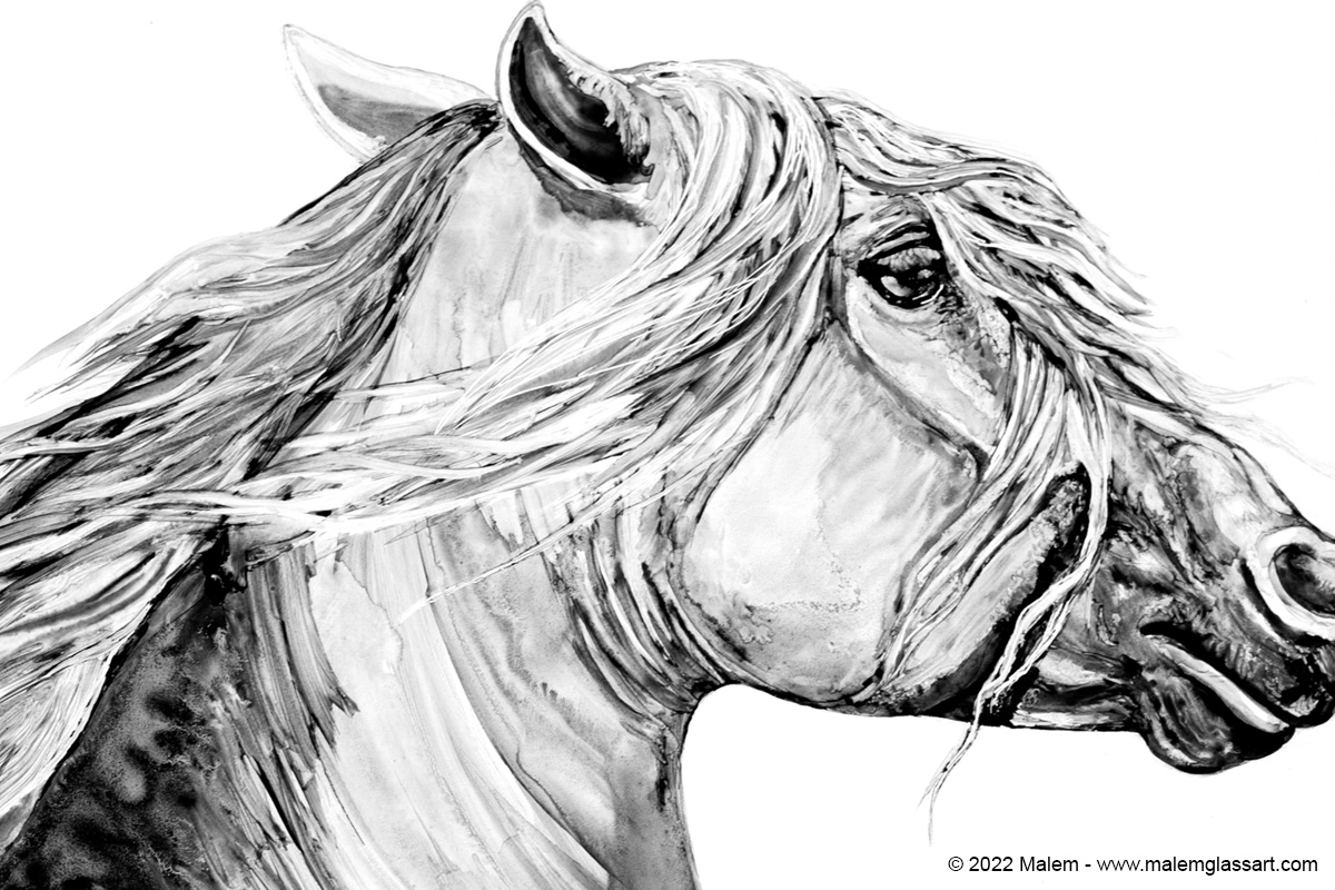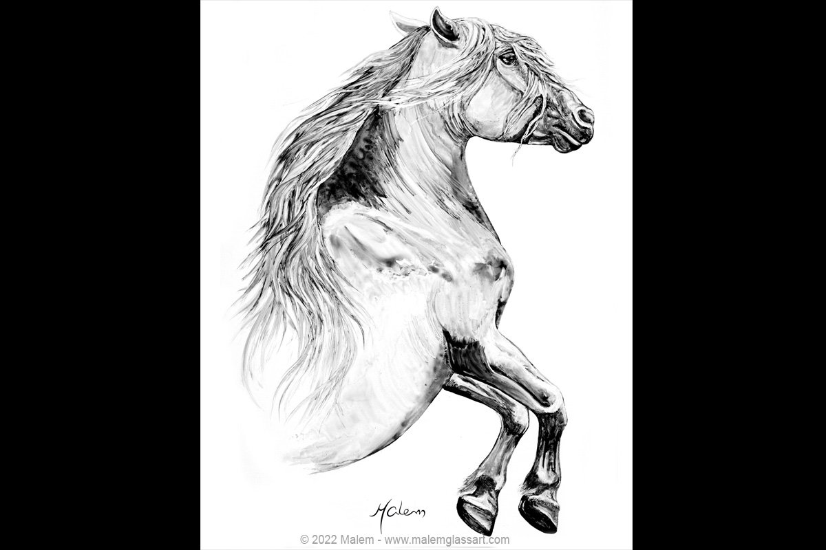 Yoda, a poney stallion trained in Haute Ecole performing at an artistic equine show.