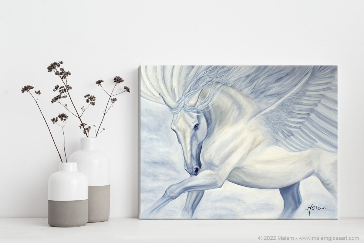Professional canvas mounted on a wood frame of 11" x 14". Shipped in a box.