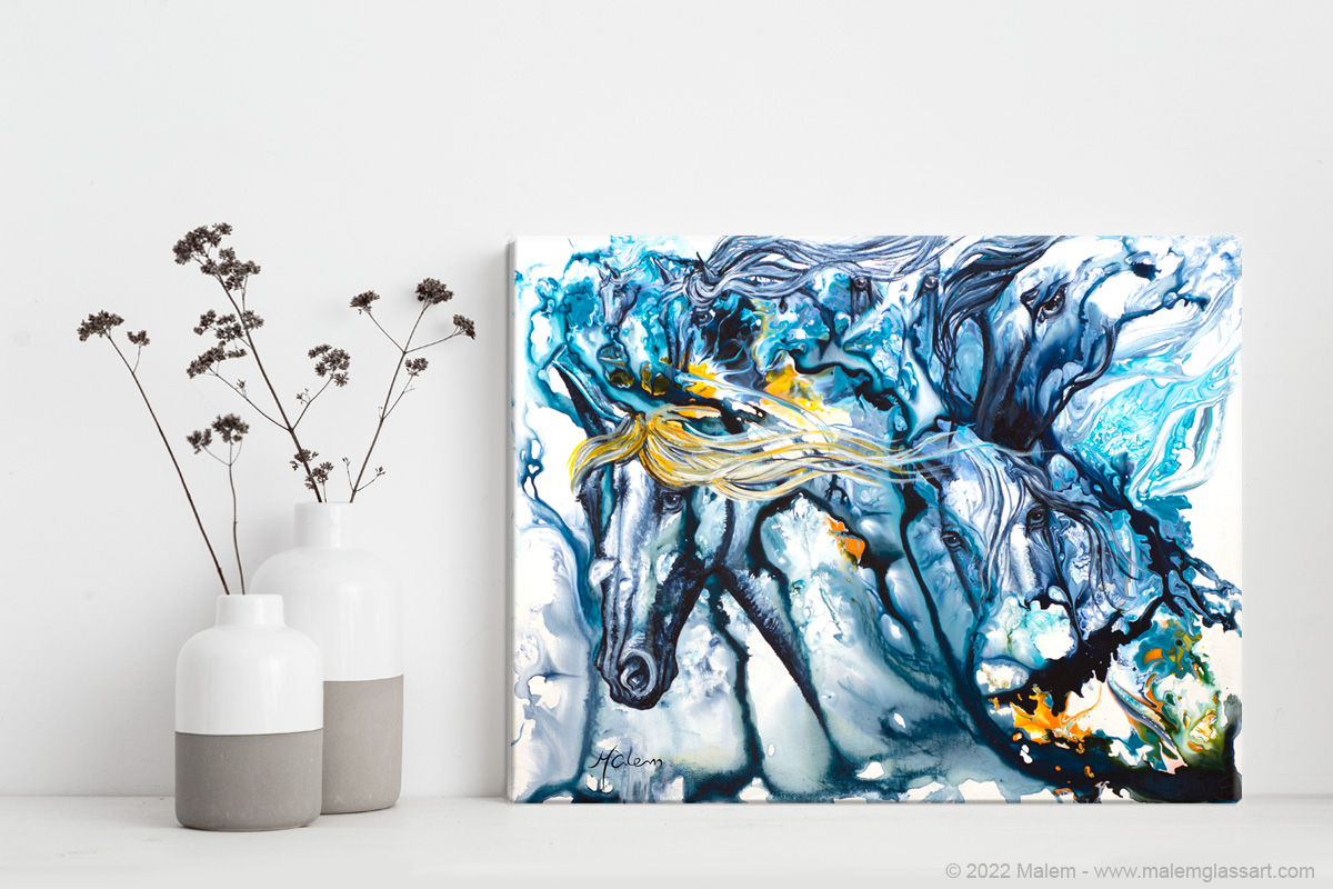 Professional canvas mounted on a wood frame of 11" x 14". Shipped in a box.