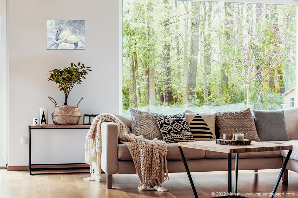 Professional canvas mounted on a wood frame of 11" x 14". Shipped in a box.